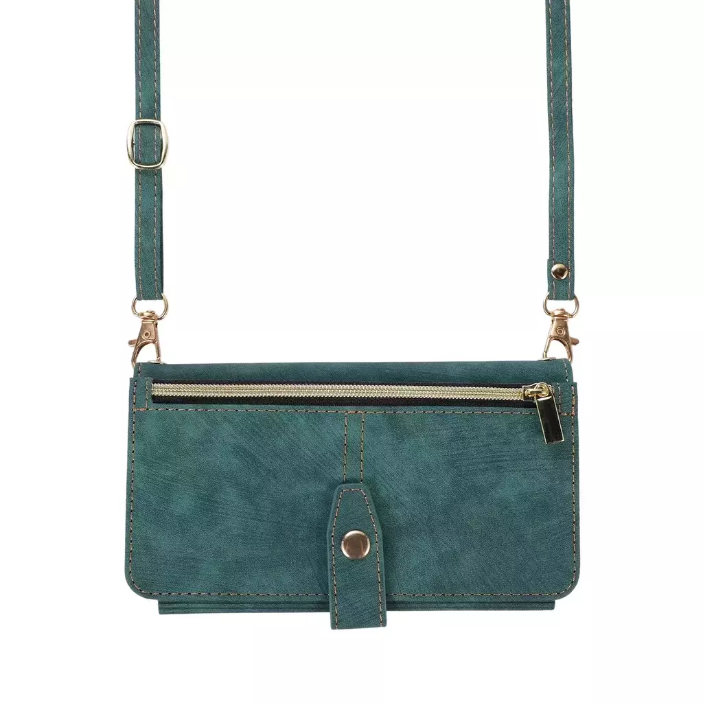Recursos extras: Porta-cartões, compartimento com zíper, suporte para visualização, alça ajustável crossbody