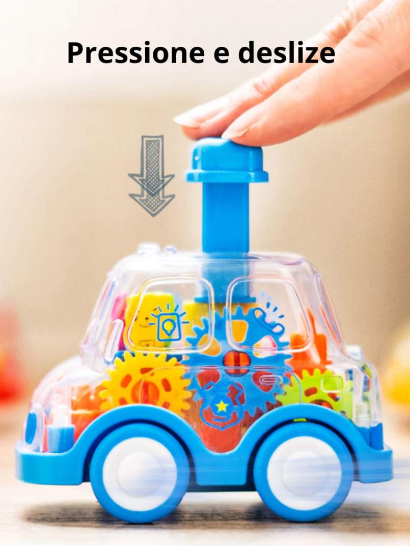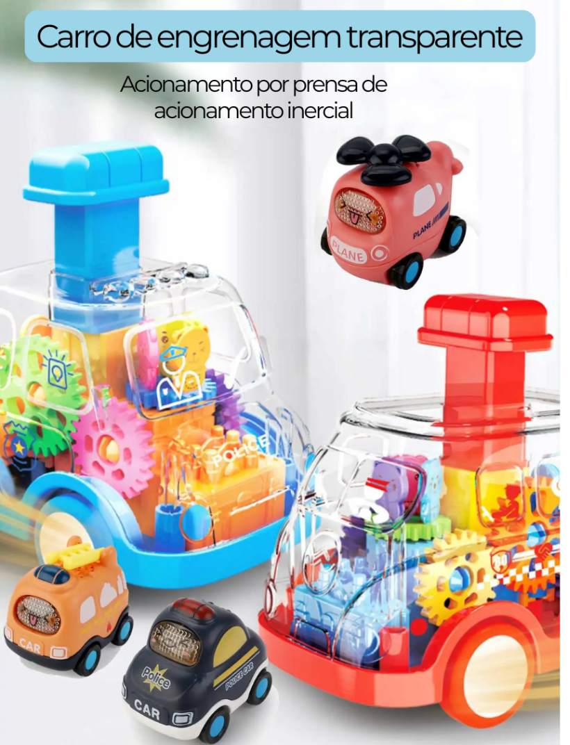 Apresentamos o Carrinho Engrenagem Mágica™, o brinquedo perfeito para estimular a curiosidade, coordenação e raciocínio das crianças. Com um design colorido, transparente e cheio de engrenagens visíveis, esse carrinho se move por inércia, basta pressionar, soltar e ele desliza suavemente!