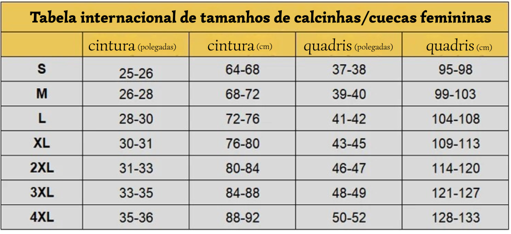 Recomenda-se escolher um tamanho menor para um ajuste perfeito ao corpo.