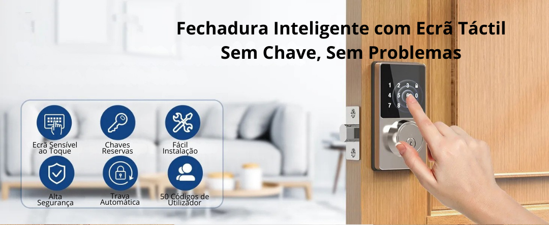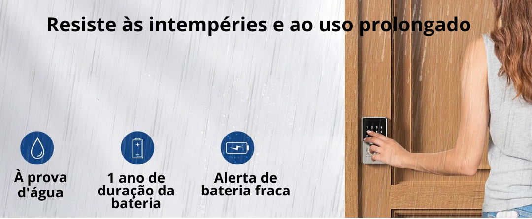 Entrada sem chaves: Desbloqueio por senha no teclado touch ultra-responsivo (com 2 chaves de backup).