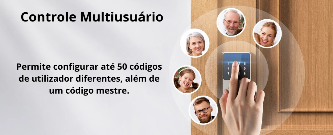 Até 50 usuários: Crie códigos personalizados para familiares, visitas ou funcionários.