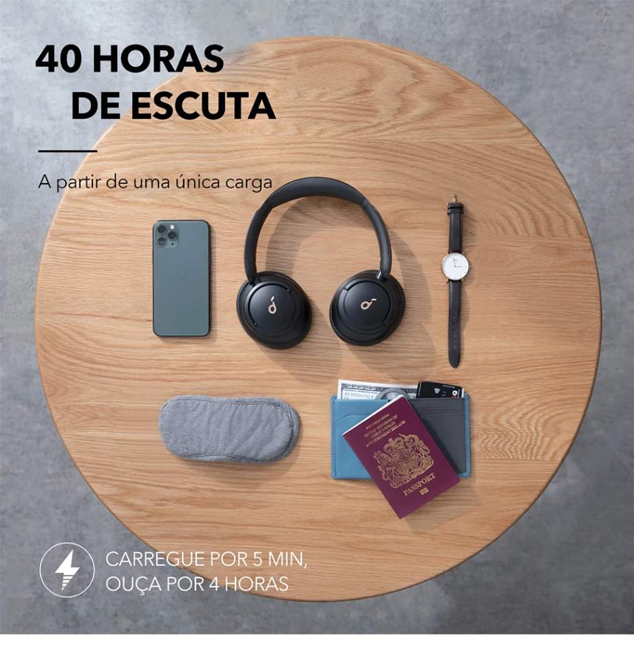 Desfrute de uma experiência sonora premium com os fones de ouvido Soundcore Life Q30. Com cancelamento de ruído ativo híbrido, drivers de 40mm Hi-Res, conforto prolongado e bateria de até 60 horas, esse modelo é ideal para quem busca qualidade, praticidade e imersão — seja para música, chamadas ou estudos.