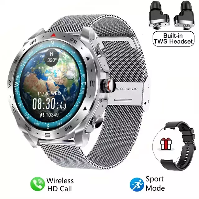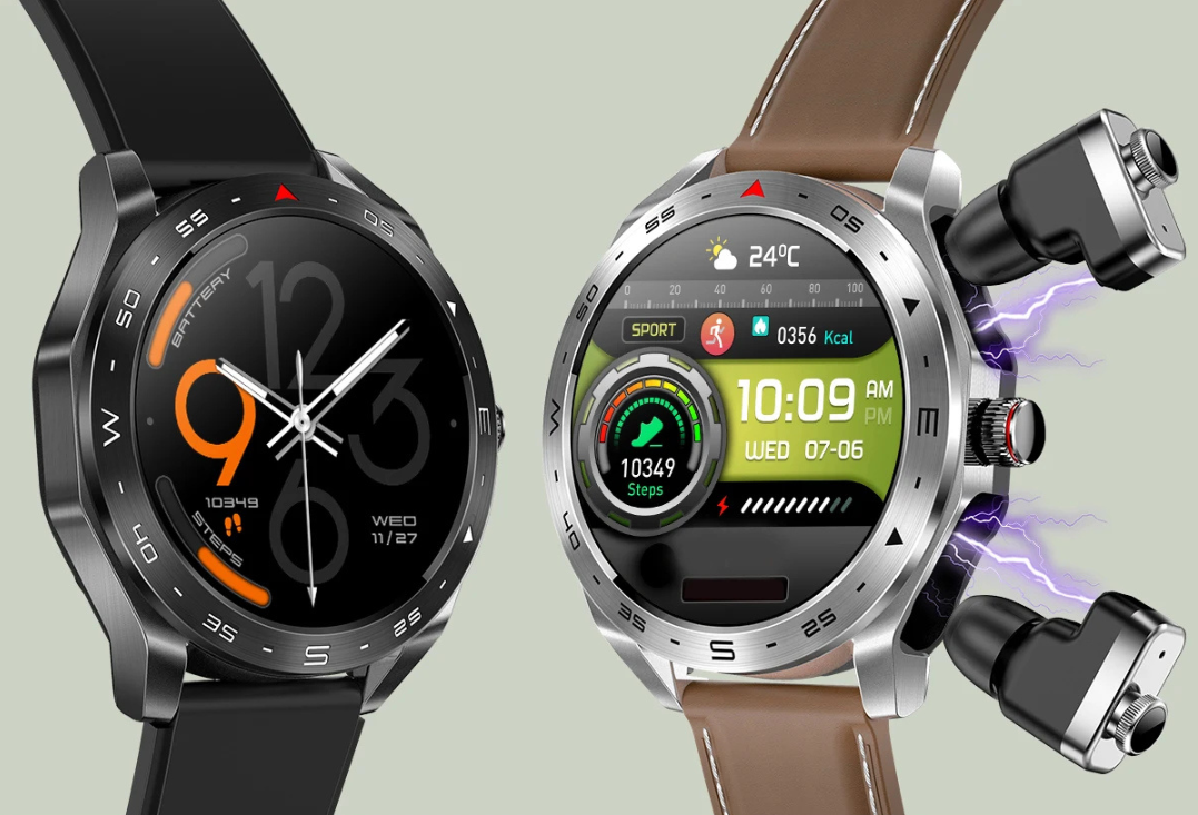 ✅ Dois em um – Relógio inteligente + fones de ouvido TWS embutidos.